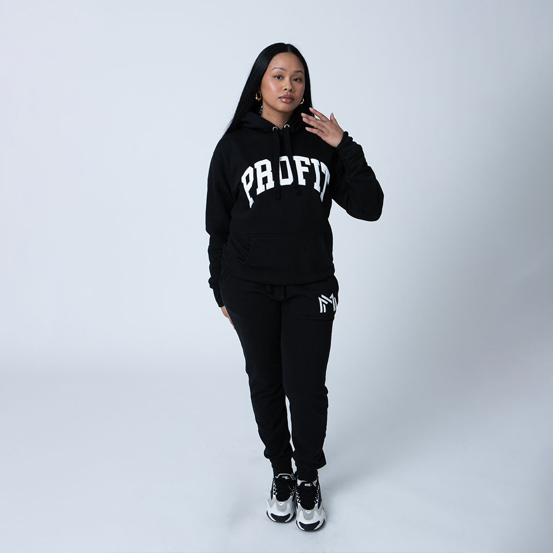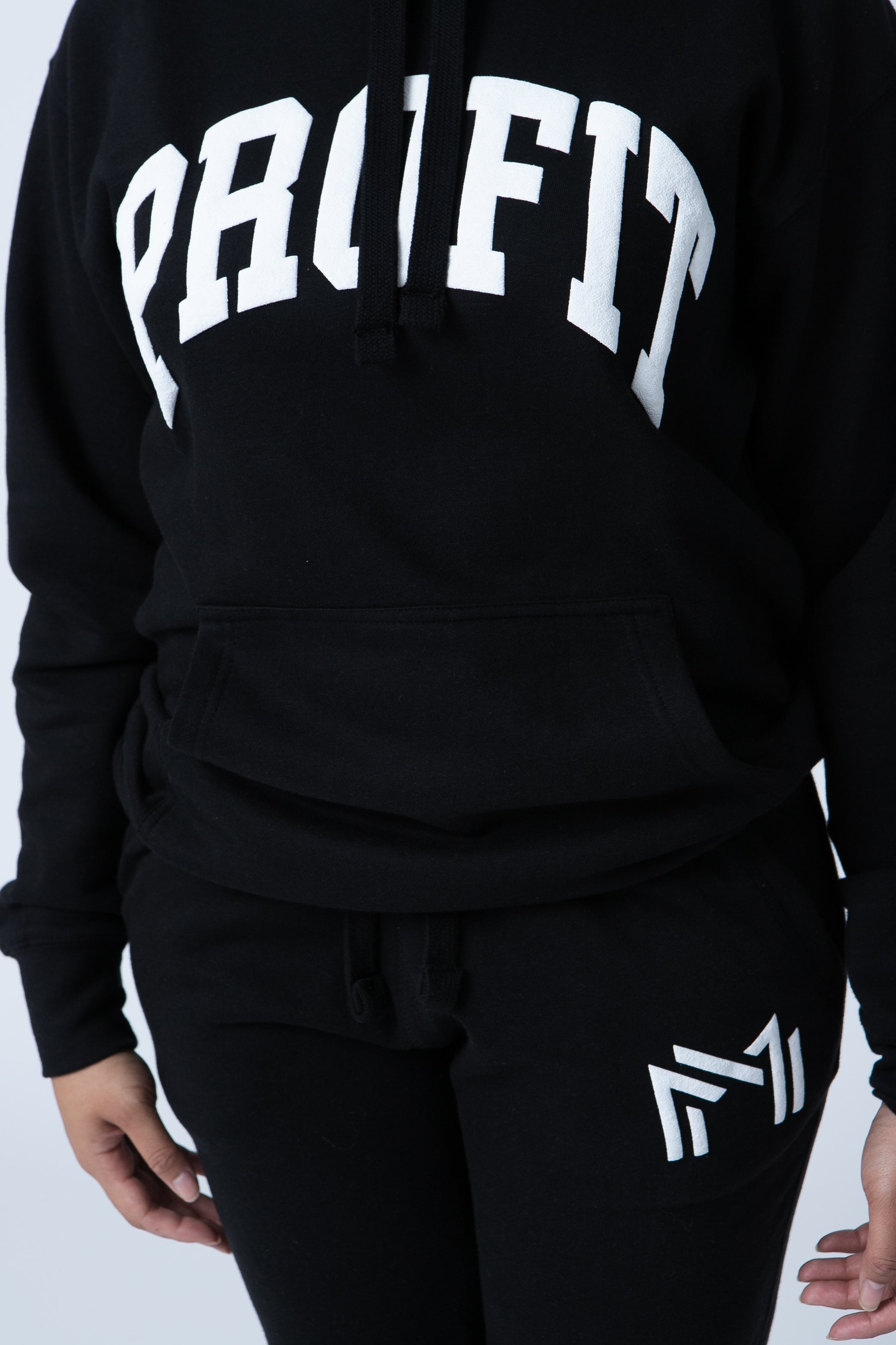 All Profit. Made with a midweight 8.5 oz 65/35 cotton/polyester fabric with all prints in puff ink, giving it an elevated look.